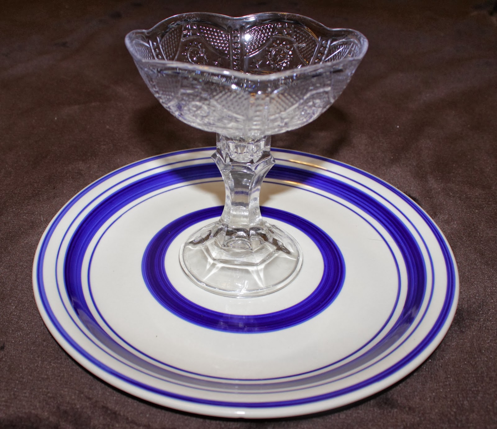 There were two stoneware plates to choose from at my dollar store so I went for the most appealing one. I also picked up a glass candlestick and a four pack of plastic bowls (they didn't have any stoneware or glass bowls). Total cost: $3.